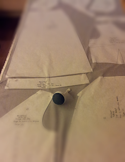 Bref parce qu'il fallait bien que je me lance, j'ai coupé ... mon coupon.D'abord j'ai placé les pièces en tenant compte du plan indiqué dans la notice ...